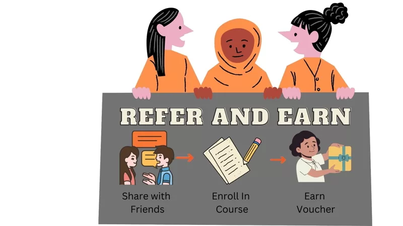 Refer to your Friends and they enroll in a course you get a voucher in a 30 Days.